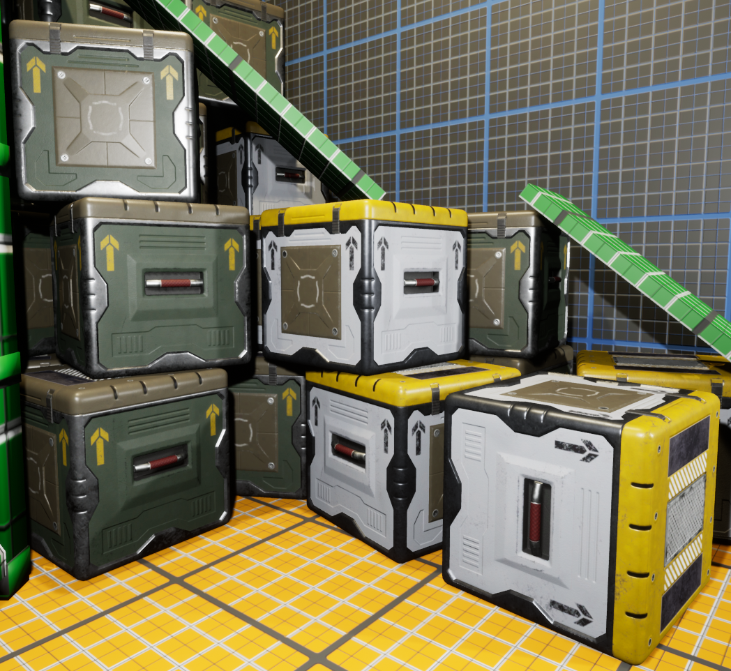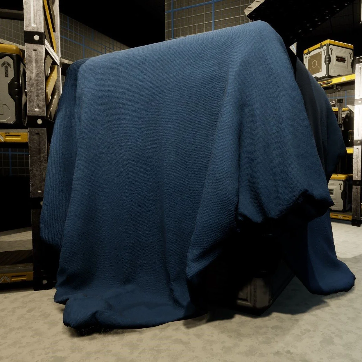 The shapes of the tarps over these containers were achieved using cloth simulations in Blender. After achieving a desirable shape, they were re-topologized for more efficient engine use.