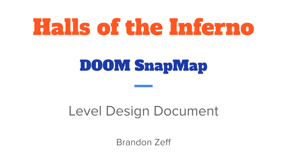 Halls of the Inferno is my first foray into the DOOM SnapMap editor. With my primary focuses being on growing my skills related to level flow and engaging combat encounters, I deferred some narrative details to an AI writing tool. The total development time was approximately 80-90 hours. The level can be played using the SnapMap code KH9QQKJR.